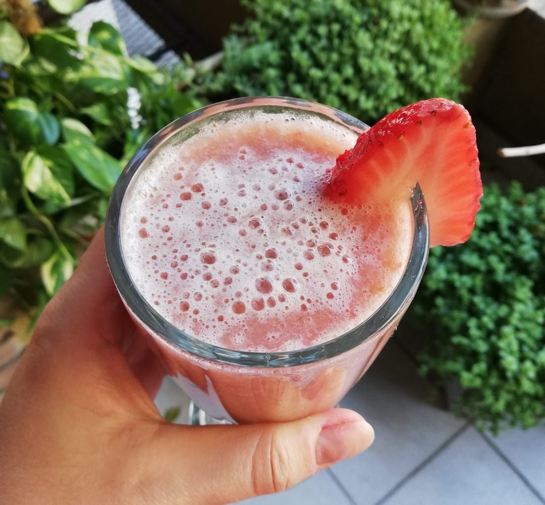 jose5 / 511 banana madura (MUY)?2 huevos?2 sobres de Dulkré Stevia ;)1/4 taza de harina de amaranto1 scoop de proteína de suero de leche hidrolizada1/4 cdita bicarbonato de sodio